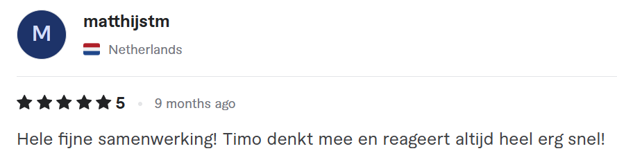 Op zoek naar Google of Meta Ads, zonder je blauw te betalen, contracten waar je vast aan zit of een nummertje te zijn? Mijn naam is Timo, aangenaam! Werk rechtstreeks samen met een specialist die meedenkt, uitvoert en bijstuurt waar nodig. Transparant, Persoonlijk, Doelgericht.